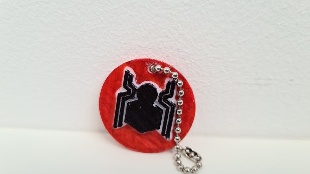 This is a simple keyring, in a circular shape, that comes as a .stl file, so it is ready to be 3D printed. It does not come with a key chain or coloured. I 3D printed it using a white filament then used a sharpie to colour it in and went over the whole thing with PVA glue, to make sure the marker does not rub off easily.
